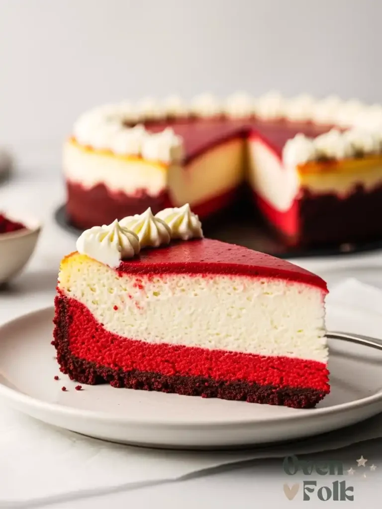 Imagine your fork gliding through a layer of velvety, cocoa-infused crimson cheesecake, meeting a salty-sweet graham cracker crust, and finishing with a tangy New York-style swirl. It’s the ultimate “showstopper” dessert that looks like it came from a professional bakery case.